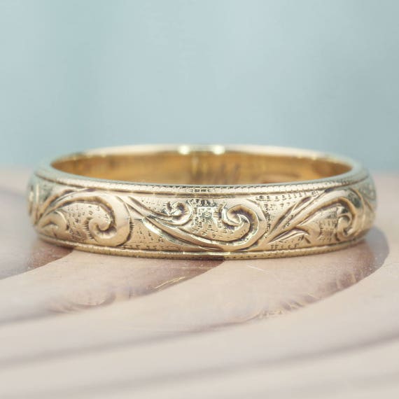 Vintage 14k Gold Swirl Pattern Wedding Band Size 6 Etsy 14k Gold Wedding Band Vintage Wedding Band Gold Vintage Wedding Band